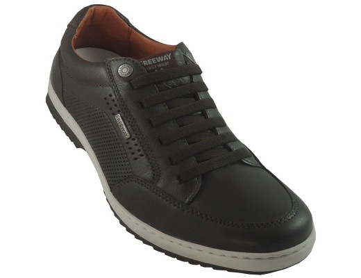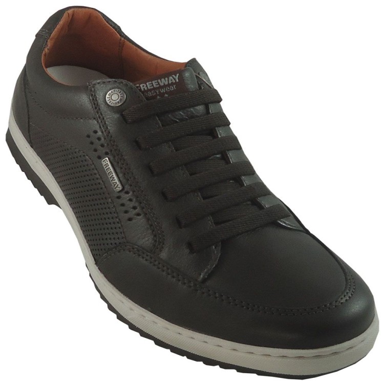 Tênis Masculino Freeway modelo Domus. Confeccionado em couro natural, conta com forração em couro. Amarração através de tiras elásticas, facilitando o calce. Solado em borracha, costurado ao cabedal. Palmilha de Poliuretano, revestida em couro.