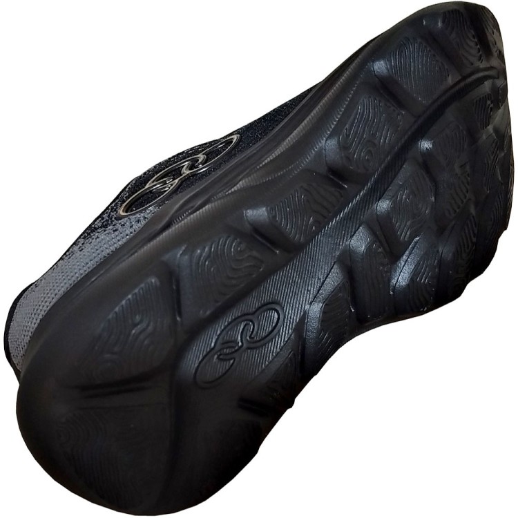 A palmilha em EVA com poliéster, além de anatômica, auxilia na ventilação dos