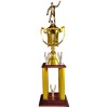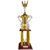 Troféu Jeb's Ref. 0133 60 cm cor dourado, base de madeira com estatueta no topo e cinco mini estatuetas de águia no corpo do troféu.